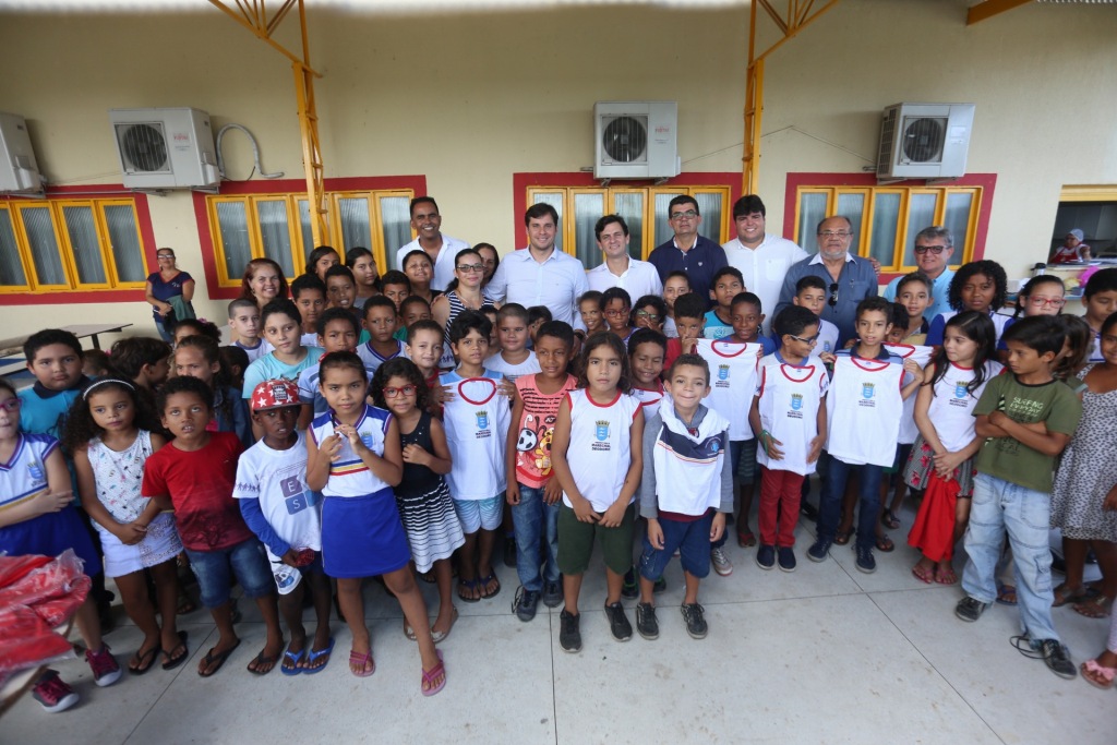 “Este ano estamos entregando os fardamentos. No próximo, além dos uniformes, também entregaremos mochilas a todos alunos”, disse o prefeito Cacau, durante as entregas.