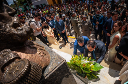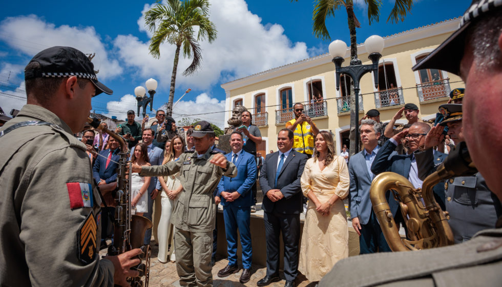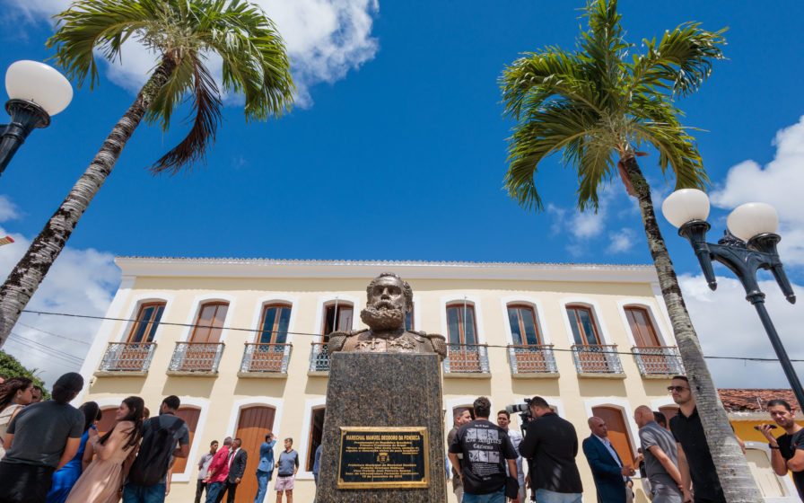 A solenidade teve início no Palácio Provincial, onde o prefeito André Bocão e o governador Paulo Dantas realizaram a homenagem ao Proclamador da República com a entrega de flores no busto de Marechal Deodoro da Fonseca, em frente à sede da Prefeitura.