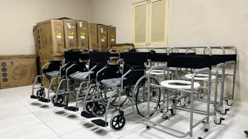 Ao todo, foram entregues 12 cadeiras de rodas, 10 cadeiras de rodas para banho e um andador, equipamentos fundamentais para auxiliar na rotina diária dos pacientes e de seus cuidadores, promovendo mais autonomia e segurança.